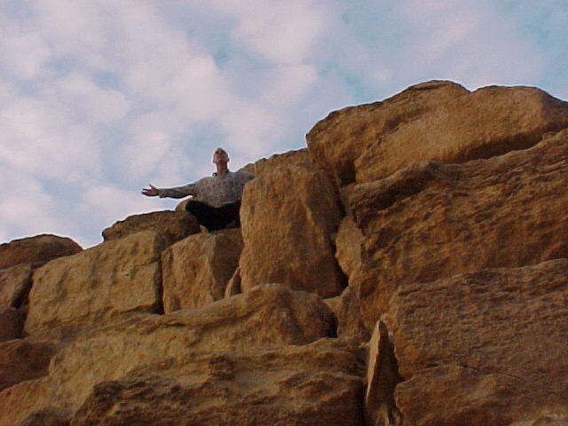 Our next stop was the Dead Sea, a fairly unremarkable body of water apart from it's absurd salt content, which allows bathers to float almost without getting wet. Shivering as I changed into my Speedo's on that winter's morning at 8:45, I recalled that I was standing on the lowest point on the planet. Just two weeks before, I reflected, I'd been gazing at the summit of Mount Everest. I'd read that the Dead Sea is 350m below sea level, and I remember being puzzled as to how a sea can be below sea level. I waded into the surprisingly warm water, complete with sandals (the salt encrustations on the rocks are guaranteed to cut your feet to ribbons), and floated in water for the first time in my life (I have a strange body mass that refuses to float in water - normal water, that is) (click here). You can lift both legs and both arms out of the water, and still float like a turd in porridge.
