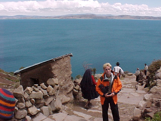 The next day we bid farewell to our hosts (inasmuch as none of us spoke a common language), and returned to the boat for a visit to the island of Tequile. Tequile was much the same as Amantani, so I ripped of a couple more shots of Lake Titicaca (click here and here), and a few shots of the locals (click here and here). Tequile even had one of those signposts that tells you how far you are from all the major cities in the world (including Sydney, or "Sidney") (click here). I got out my palmtop and checked its estimates - they were uncannily accurate (13,027km (displayed) vs. 13,001km (true) to Sydney). I'm such a nerd......