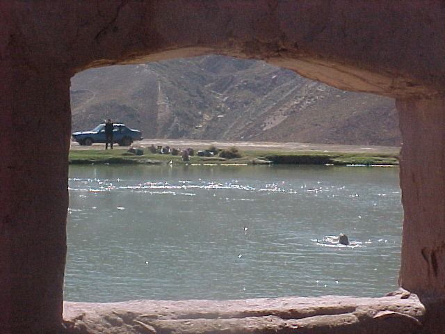 The springs flow out of the side of the mountain and are captured and fed into a complex of concrete pools of various sizes and temperatures (click here - that's Melany, and here). I went up to the pools with Melany and Tom (who didn't feel like swimming), and stayed for most of the afternoon. Sitting in the pools, I got talking to a couple of French girls, Delphine and Cecile, and found to my delight that they were not only travelling towards Bolivia on the train the next day (as was I), but were actually happy to have a travelling companion. Lovely, friendly ladies they were (click here), and meeting them quite made my day, it did.